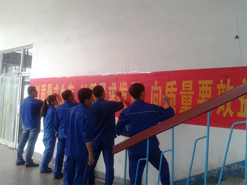 公司在質量月活動前期于9月1日舉行了“以質量求生存,以質量求發展,向質量要效益”全員簽名活動,以此作為質量月啟動儀式。
